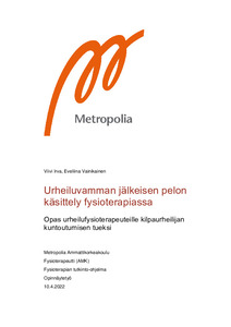 Tässä toiminnallisessa opinnäytetyössä perehdytään urheiluvamman jälkeiseen fysioterapeuttiseen kuntoutukseen pelon osalta psykososiaalisesta näkökulmasta. Kilpaurheilumaailmassa loukkaantumisen jälkeinen tunteiden käsittely ja optimaalisen kuntoutumisen suunnittelu erottuu tavallisesta kuntoutuksesta ja korostuu erilaisten taustatekijöiden vuoksi, ja lisäksi takaisinpaluu kisakentille pitäisi usein tapahtua mahdollisimman nopeasti.