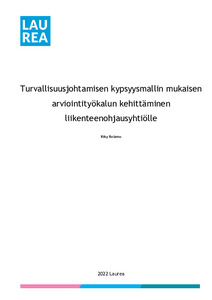 Tämän opinnäytetyön tarkoitus oli laatia turvallisuuden kypsyysmalliin perustuva helppokäyttöinen arviointityökalu. Tavoitteena oli, että työkalulla pystyttäisiin arvioimaan kaikkien Fintraffic-konsernin tytäryhtiöiden turvallisuuden johtamisjärjestelmien kypsyyttä suhteessa toisiinsa ja ulkopuolisiin toimijoihin. Käytettävä kypsyysmalli oli valittu toimeksiantaja Fintraffic Oy:n toimesta ennen opinnäytetyön aloitusta. Opinnäytetyössä tehtiin arviointityökalun käytännön kehitys, joka sisältää sekä testauksen että soveltuvuuden arvioinnin.