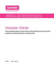 Tulosten perusteella perhevapailta töihin palaavien toimihenkilöiden perehdytys on kohtalaisen hyvällä tasolla Itäisen vakuutuspiirin toimeentuloturvan keskuksessa. Toisaalta tuloksissa oli saman vakuutuspiirin sisällä huomattavia tiimi- ja esihenkilökohtaisia eroja, joten erityisesti käytäntöjen yhtenäistämiseen tulisi panostaa jatkossa. Keskeisimmiksi kehityskohteiksi nousivat perehdytyksen tasalaatuisuuden varmistaminen ja esihenkilötyön kehittäminen erityisesti perhemyönteisyyden näkökulmasta. Tutkimus on tehty haastattelemalla perustoimeentulotuen ratkaisutyön parissa työskenteleviä, mutta tutkimuksessa ilmenneet kehittämiskohteet ja ratkaisuehdotukset ovat hyödynnettävissä koko Kelan organisaatiossa sekä lisäksi muilla toimialoilla.