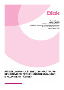Opinnäytetyön tuotoksena syntyi kulttuurisensitiivisen perhekuntoutusjakson malli, joka sisältää kuvauksen perhekuntoutusjakson prosessista ja rakentees-ta, Päiväkummun lastenkodin tehostetusta perhetyöstä, perhekuntoutusjaksolla käytettävistä menetelmistä, työntekijöiden roolit kuntoutusjakson aikana sekä kuvauksen yhteistyöstä lapsen asioista vastaavan sosiaalityöntekijän ja muiden toimijoiden kanssa. Mallin sisältöä luodessa on keskitytty niihin menetelmiin, jotka kehittämisen aikana ilmeni työyhteisön mielestä sopiviksi juuri näille van-hemmille. Perhekuntoutusjakson malli otetaan käyttöön osana Päiväkummun lastenkodin perhetyötä ja sitä jatkokehitetään vielä toteutuksen jälkeen vanhempien palautteen perusteella.