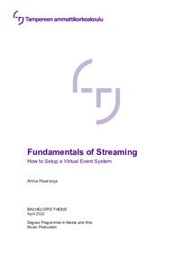The goal of this thesis was to present the fundamentals of streaming technology and how streaming technology can be used as a tool. Virtual event technologies in the event production were studied in this thesis. This thesis can be used as a guide on how to produce a virtual event system. The emphasis was on the technical production aspects.