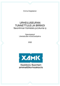 Tämän opinnäytetyön toimeksiantajana toimi savonlinnalainen urheiluseura Savonlinnan Voimistelu ja Liikunta ry. Opinnäytetyön tarkoituksena oli selvittää Savonlinnan Voimistelu ja Liikunta -seuran tunnettuutta ja brändi-imagoa eri sidosryhmissä. Tavoitteena oli tuottaa toimeksiantajalleni kehittämisehdotuksia seuran tunnettuuden parantamiseksi ja brändin kehittämiseksi.