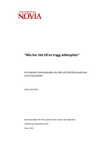 "Alla har rätt till en trygg arbetsplats", En kvalitativ intervjustudie om våld och hotfulla situationer inom hemvården