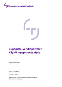 Työn lopputuloksena saatiin opas Lupapiste-verkkopalvelun käytöstä, rakennuslupaprosessista ja sen eri vaiheista sekä kooste Lupapiste-palvelun kehittämiskohteista eri osapuolten kokemusten perusteella. Työn tuloksia voi hyödyntää niin Lupapiste kuin kaikki muutkin Lupapisteessä asioivat osapuolet.