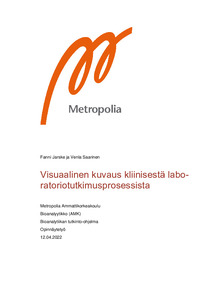 Tämän toiminnallisen opinnäytetyön tarkoituksena oli tehdä informatiivinen posteri kliinisestä laboratoriotutkimusprosessista. Posterissa kuvataan laboratoriossa käyville asiakkaille verinäytteen kulku näytteenotosta tuloksen saamiseen. Kliininen laboratoriotutkimusprosessi sisältää monta eri vaihetta, joiden kautta asiakkaasta otettu näyte valmistellaan analysointia varten, analysoidaan ja asiakas saa tuloksen sähköisen järjestelmän kautta, tai terveydenhuollon ammattilaisen ilmoittamana. Posterissa on käytetty asian selkeyttämiseksi muutamaa tuttua verinäytettä esimerkkinä. Tavoitteena opinnäytetyössä oli tuoda asiakkaille tietoa siitä, mitä näytteille tapahtuu näytteenoton jälkeen. Tiedon tarjoamisen lisäksi tavoitteena oli myös lisätä viihtyvyyttä laboratorion odotustiloihin ja näin lisätä asiakkaiden tyytyväisyyttä laboratorion toimintaan. Tuotosta eli posteria on tarkoitus hyödyntää polikliinisen näytteenoton odotustiloissa infotaululla tai seinällä. Opinnäytetyö tehtiin yhteistyössä HUS Diagnostiikkakeskuksen kanssa. Posterin kuvat otettiin Meilahden automaatiolaboratoriossa ja Haartmanin sairaalan laboratoriossa. Lopullinen posteri tehtiin HUSin posteripohjaan, jolloin posterin väritys ja tyylittely sopivat HUSin ilmeeseen. Posterin sisältö suunniteltiin yhdessä opinnäytetyön yhteistyötahon kanssa. Posterin tavoitteiden onnistumista ei mitattu kohderyhmässä, mutta posterista pyydettiin palautetta alan opiskelijoilta. Palaute oli positiivista ja tuki tekijöiden omaa pohdintaa tavoitteiden täyttymisestä ja posterin visuaalisesta ilmeestä.