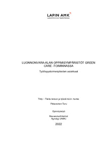 Luonnonvara-alan oppimisympäristöt Green Care - toiminnassa : työllisyystoimenpiteiden asiakkaat