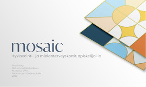 Opinnäytetyössä suunniteltiin opiskelijoille suunnatut Mosaic hyvinvointi- ja mielenterveyskortit, jotka tarjoavat käyttäjälleen tietoa ja neuvoja itseymmärryksen ja hyvinvoinnin lisäämiseksi. Motivaationa opinnäytetyössä oli opiskelijoiden jaksamiseen liittyvät ongelmat, jotka ovat nousseet pinnalle erityisesti koronapandemian aikana. Korteilla haluttiin parantaa opiskelijoiden hyvinvointia ja samalla levittää tietoa mielenterveyteen liittyvistä asioista ja vähentää aiheeseen liittyvää stigmaa.