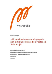 Kriittisesti sairastuneen lapsipotilaan siirtokuljetusta edistävät tai estävät tekijät