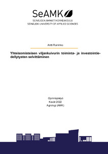 Opinnäytetyssä selvitettiin toimintaympäristöanalyysin avulla yhteisomisteisen kaukolämmöllä toimivan viljankuivurin toimintaedellytyksiä. Analyysin pohjalta laadittiin kahdesta erityyppisestä viljankuivurista investointilaskelmat, joilla selvitettiin kuivattavan viljatonnin kustannusta eri kuivurityypeillä. Tulosten pohjalta laadittiin SWOT-analyysi, jossa kuvataan mahdollisuuksien hyödyntäminen, uhkien hallinta, vahvuuksien käyttäminen hyväksi ja heikkouksien poistaminen. SWOT analyysia hyödynnetään osakkaiden etsinnässä.
