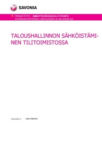 Opinnäytetyön tavoitteena oli selvittää sähköisen taloushallinnon tarjoamia mahdollisuuksia sekä sen käyttöönottoa toimeksiantajalla. Toimeksiantajana oleva tilitoimisto työllistää muutaman henkilön, ja sen asiakkaat ovat suurimmaksi osaksi muutaman hengen työllistäviä yrityksiä. Opinnäytetyössä pyrittiin tuomaan esiin konkreettisia eroavaisuuksia sähköisen ja perinteisen taloushallinnon välillä. Samalla tarkoituksena oli löytää toteuttamiskelpoisia kehittämiskohteita tilitoimiston toiminnassa.