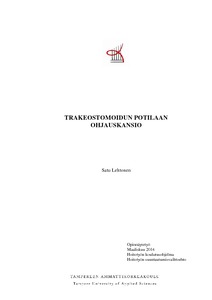 Tämä opinnäytetyö tehtiin tuotokseen painottuvana opinnäytetyönä yhteistyössä Pirkanmaan sairaanhoitopiirin kanssa. Opinnäytetyön tarkoituksena oli tehdä ohjauskansio trakeostomian hoidosta Pirkanmaan sairaanhoitopiirin alueelle potilaiden ja hoitajien käyttöön. Opinnäytetyön teoreettisina lähtökohtina olivat trakeostomoidun potilaan ohjauskansio, potilaan ohjaaminen, trakeostomoidun potilaan hoito ja ohjauskansio.