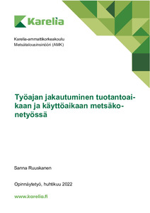 Opinnäytetyössä tutkittiin työajan jakautumista tuotantoaikaan ja käyttöaikaan harvesteri-, kuormatraktori-, koneketju- ja kuljettajakohtaisesti sekä harvestereiden ja kuljettajien käyttötuntituottavuutta hakkuutavoittain. Työ toteutettiin metsäkoneiden keräämien tietojen ja kuljettajien tekemien työaikakirjausten perusteella.