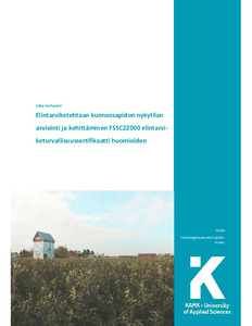 Tämän tutkimustyön tavoitteena oli selvittää Verso Food Oy:n tehtaan kunnossapidon nykytila ja sen pohjalta laatia kehityskohteet. Lisäksi tutkimuksessa oli huomioitava FSSC22000 elintarviketurvallisuussertifikaatti, miten tämä tulisi ottaa huomioon kunnossapidon kehittämisessä. Tutkimuksen tavoitteena oli myös kunnossapidon mittariston luonti, jotta sen toimintaa voisi tulevaisuudessa paremmin seurata, arvioida ja edelleen kehittää.