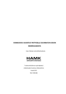 Tämän opinnäytetyön tarkoitus oli selvittää, miten yritysasiakkaita pystyttäisiin palvelemaan paremmin verkkosivujen välityksellä. Toimeksiantajan haasteena oli, että verkkosivujen yrityksille suunnattu osio ei vastannut asiakastarpeisiin. Työn tarkoituksena oli nykyisten verkkosivujen yrityksille-osion kehittäminen. Opinnäytetyö toteutettiin toimeksantona Hämeen ammattikorkeakoululle. Hämeen ammattikorkeakoululle on tulossa verkkosivu-uudistus ja tutkimustuloksia sekä tutkimusten kautta kerättyä tietoa voisi käyttää myös uuden verkkosivun suunnittelussa. Verkkosivut ovat nykypäivänä monelle se kanava, josta hankitaan ensimmäisenä tietoa yritykseen ja sen tarjoamiin palveluihin liittyen. Tutkimuksen tarkoituksena oli selvittää miten alueen yrityksiä pystyttäisiin palvelemaan paremmin verkkosivujen välityksellä ja miten alueen yritykset löytävät Hämeen ammattikorkeakoulun tarjoamat yrityspalvelut. Opinnäytetyön teoriaosuus koostuu kahdesta osasta, palvelumuotoitoilusta ja verkkosivujen kehittämisestä.