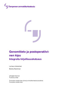 Genomilääketiede muokkaa tulevaisuuden hoitomuotoja. Se on nopeasti kehittyvää ja hoitotyön ammattilaiset tarvitsevat lisää tietoa genomilääketieteestä ja sen hyödyntämisestä potilaiden hoidossa. Postoperatiivisella kivunhoidolla pyritään vähentämään sekä inhimillisistä kärsimystä että kivun aiheuttamia komplikaatioita. Tämän integroidun kirjallisuuskatsauksen tarkoituksena on tuottaa lisää tietoa genomitutkimuksen tulosten hyödyntämisestä postoperatiivisen kivun hoidossa.