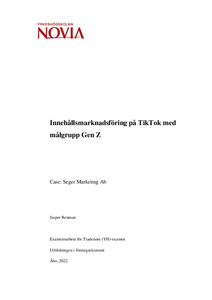 Arbetets teoretiska del behandlar vad innehållsmarknadsföring innebär och hur detta fenomen används i dagens värld, vad TikTok är och vem Gen Z är. Arbetets empiriska del består av en kvalitativ expertintervju samt en kvantitativ enkätundersökning. Den kvalitativa expertintervjun har utförts tillsammans med Seger Marketing Ab, för att klargöra deras syn. För att sedan ge ett mera ingående resultat ska en enkätundersökning besvarad av personer ur Gen Z klargöra deras åsikt.