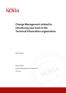 The research found a lack of information and training for new tool introductions. It also found that many employees don’t necessarily see the new tool as superior to the old one. Planning and cooperation were also reported as development opportunities and recommendations to rectify the major pain points were given. Detta examensarbete skrevs för Technical Information, en organisation i ett globalt teknologiföretag verksam inom marin- och energibranschen. Technical Information förädlar produkt- och livscykeldata till lättförståelig teknisk information för kunders användning. Förädlingen av data till information kräver en avancerad uppsättning verktyg. Verktygen blir hela tiden uppdaterade och ersatta.