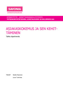 Tässä opinnäytetyössä tutkittiin asiakkaiden tyytyväisyyttä majoituskokemukseen Tahko Apartmentsin majoituskohteissa. Tavoitteena oli selvittää asiakaskokemuksen tämänhetkinen tilanne, eli mihin asiakkaat olivat jo tyytyväisiä ja mitä asioita voitaisiin kehittää tulevaisuudessa. Tarkoituksena oli selvittää, mitkä asiat vaikuttavat asiakaskokemuksen muodostumiseen ja saada asiakkailta konkreettisia, käytäntöön vietäviä kehitysehdotuksia Tahko Apartmentsin palveluiden kehittämiseksi.