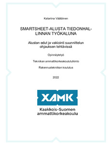 Opinnäytetyössä tutkittiin Smartsheet-tiedonhallintatyökalun käyttötapoja sekä laajuutta YIT Suomi Oy:n Toimitilat ja Kiinteistökehitys -segmenteissä. Tutkimuksessa Smartsheet-alustaa käsiteltiin Lean-periaatteita tukevana työkaluna ja tutkittiin sen tunnistettuja hyötyjä yhteistyötä tehostavana alustana. Tutkimuksen tavoitteena oli löytää alustan hyväksi havaitut käyttötavat, jakaa nämä käyttötavat laajemmin hankkeiden käyttöön vakioitujen mallipohjien muodossa sekä löytää tapa mallipohjien jakelulle.
