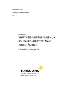 Tämän opinnäytetyön toimeksiantaja on Stora Enso Packaging Oy ja työn tavoitteena oli luoda uusi johtamisjärjestelmä ja yhdistää se Packaging Solutions -divisioonan intrasivuihin. Tulosyksiköllä on käytössään ISO-standardiperhe. Uuden johtamisjärjestelmän tuli vastata sertifioidun laatujärjestelmän toimintatapoihin. Opinnäytetyö toteutettiin toiminnallisena tutkimuksena keväällä 2022. Projektin ensimmäisenä vaiheena oli käytössä olevan johtamisjärjestelmän kehityskohteiden selvittäminen. Packaging Sweden oli jo aiemmin ottanut käyttöönsä uuden johtamisjärjestelmän.