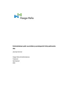 Kolmiulotteisen pelin suunnittelu ja prototypointi Unity-pelimoottorilla