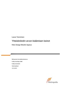 Tapaustutkimuksen kohteena on suomalaisista lastentuoteyrityksistä muodostuva Kids Design Block -yhteisö. Tutkin Kids Design Blockin mahdollisuuksia hyödyntää brändinhallinnan teoriamalleja brändin arvon lisäämiseksi.