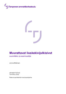 Muurattavista liuskekivijulkisivuista on hyvin vähän saatavilla olevaa tietoa. Opinnäytetyön tilaajana toimi Liuskemestarit Oy, joka louhii ja maahantuo liuskekiveä Suomessa. Heillä oli tarve saada selkeä suunnittelu- ja asennusohje asiakkaille tai muuten aiheesta kiinnostuneille ja näin helpottaa hieman tuntemattomamman rakentamistyylin käyttöä julkisivuissa.