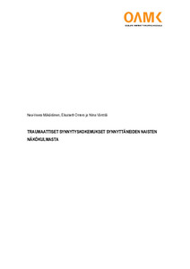 Opinnäytetyön tarkoituksena oli kuvailla synnyttäneiden naisten traumaattisia synnytyskokemuksia. Tavoitteena oli saada tietoa siitä, minkälaisia traumaattisia synnytyskokemuksia naisilla on ja mitkä tekijät ovat vaikuttaneet näiden kokemusten syntymiseen. Opinnäytetyössä käytettiin kvalitatiivista eli laadullista tutkimusmenetelmää, ja se toteutettiin yhteistyössä Oulun ammattikorkeakoulun kanssa. Tutkimus suoritettiin teemahaastatteluilla keväällä 2021 ja haastateltavina oli kolme synnyttänyttä naista. Aineisto analysoitiin sisällönanalyysimenetelmällä. Teoriapohjassa käsitellään synnytyksen kulkua, traumaattisen synnytyskokemuksen muodostumista ja siitä toipumista. Teoriapohja on laadittu luotettavan näyttöön perustuvan tiedon pohjalta.