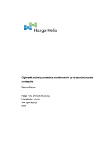 Opinnäytetyö on tehty toimeksiantona Luova toimisto Krealle. Luova toimisto Krea on Haaga-Heliassa toimiva markkinoinnin ja viestinnän opiskelijoiden luova toimisto. Opinnäytetyön tavoite oli rakentaa Krealle digimarkkinointisuunnitelma, jonka avulla voidaan toteuttaa kohdennettua digimarkkinointia. Tavoitteena oli myös suunnitella jo olemassa olevien kanavien käytön lisäksi uusien kanavien käyttöönottoa.