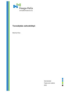 Tämän opinnäytetyön tavoitteena oli tutkia, kuinka esihenkilöt tiedostavat tunneälyn ja käyttävät sitä työssään. Opinnäytetyön kautta kartoitettiin tunneälyn malleja ja käsiteltiin tunneälyä johtajuudessa ja esihenkilötyössä. Aihe on ajankohtainen johtamissuunnan muuttuessa yhä enemmän asiakeskeisestä ihmiskeskeiseksi. Tutkimuksen pääongelmaan haettiin vastauksia alaongelmien kautta.