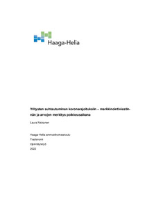 Tässä opinnäytetyössä tutkittiin vuosien 2020-2022 välillä toteutuneiden koronarajoitusten vaikutusta yrityksiin ja niiden markkinointiviestintään sekä sitä, millaisia arvoja yritys on halunnut rajoitusten aikana tuoda viestinnässään esille.