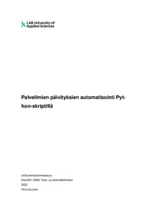 Opinnäytetyön tavoitteena oli toteuttaa toimeksiantajalle Python-skripti, joka automatisoi päivitysprosessin palvelimille. Opinnäytetyön toimeksiantajana on kansainvälinen teknologia-alan yritys. Yrityksen SaaS-palvelua ylläpidetään palvelimilla AWS-pilvipalvelussa, johon tehdään kuukausittaisia päivitystöitä.