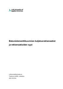 Betonielementtikuormien kuljetusreklamaatiot ja reklamaatioiden syyt