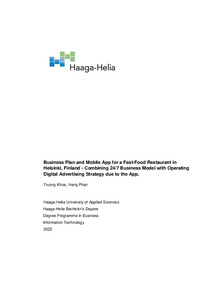 The business plan and the making of the mobile food app are ideas contributing to an authentic research document for building a 24/7 restaurant business in Helsinki. By following a given business's demands, a food ordering app emerges as a strategic advertising tool and the most sales channel of the relevant restaurant. However, in Haaga-Helia's version, the thesis will not focus mainly on the business plan. More willingly than the inclusivity plan, the thesis performance is the designer's adherence to specified business requirements, like a concept outsourcer.
