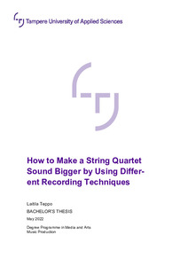 There is only a limited amount of research done on this specific topic. The purpose of this Bachelor’s thesis was to give the knowledge and tools to anyone who is aiming to make their string quartet recording sound bigger and fuller.