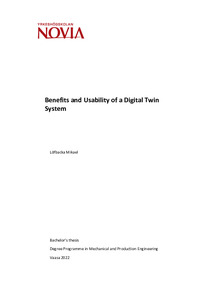 Tämän opinnäytetyön tarkoituksena on ollut tutkia Digital Twiniä ja selvittää Digital Twinin hyödyt ja käyttömahdollisuudet. Digital Twinin avulla Pietarsaaren selluloosatehdas pystyisi viemään olemassa olevia teknisiä piirustuksia ja prosessi dataa Digital Twiniin, kuten putkijärjestelmiä ja konetietoa ja näiden avulla selvittämään esimerkiksi, milloin kone tarvitsee huoltoa. Ohjelman avulla voidaan tehtaasta rakentaa 3D-malli ja yhdistää siihen tehtaasta kerättyä tietoa ja näin saadaan tehtaasta luotua virtuaalinen malli. Tämän rakennetun mallin avulla voidaan jäljitellä yksittäisen koneen ja prosessin kuntoa sekä löytää teknisiä tietoja ja dokumentteja, jotka on liitetty aikaisemmin rakennettuun malliin.