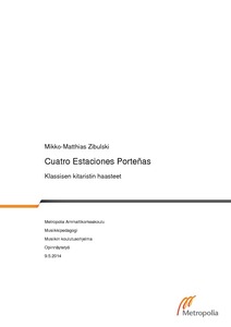 Opinnäytetyöni on monimuototyö, joka koostuu konsertista ja kirjallisesta osiosta. Soitin kvintetin kanssa konsertissa Astor Piazzollan säveltämän” Cuatro Estaciones Porteñan” (Buenos Airesin Vuodenajat), jonka äänite on osana tätä työtä. Konsertti pidettiin maanantai 22.4.2013 klo 19.00 pidetyssä ”Kitaristien Kevät 2013”-konserttisarjassa Helsingin Konservatorion kamarimusiikkisalissa.