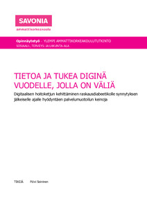 Opinnäytetyön tarkoituksena oli suunnitella ja valita sisältökokonaisuuksia digitaaliseen hoitoketjuun raskausdiabeetikolle synnytyksen jälkeisen ajan omahoidon tueksi. Työn tavoitteena oli vahvistaa ja helpottaa digitaalisen hoitoketjun myötä asiakkaiden omahoitoon sitoutumista synnytyksen jälkeen sekä auttaa heitä löytämään omaan terveydentilaan liittyvää, luotettavaa tietoa helposti koottuna yhdelle sähköiselle toteutusalustalle. Työn tavoitteena oli lisäksi hyödyntää ammattilaisten osaamista ja heidän asiakasymmärrystään uuden toimintatavan kehittämisessä hyödyntäen palvelumuotoilun menetelmiä.