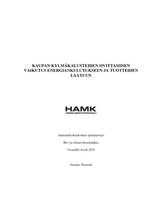 Opinnäytetyössä selvitettiin eri tekijöiden vaikutusta kaupan kylmäkalusteiden energiankulutukseen ja tuotteiden laatuun. Tarkasteltavia muuttujia olivat muun muassa kylmäkalusteiden täyttöaste, asiakasmäärä ja ulkolämpötila. Työn toimeksiantajana oli Osuuskauppa Hämeenmaa.