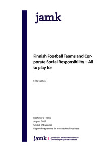 The objective of the research was to understand the role of corporate social responsibility within the Finnish main league football teams. In addition, the aim was to investigate how corporate social responsibility activities can be further increased in team operations. The research relied on a qualitative approach, and it was carried out in the form of a multi-case study strategy.