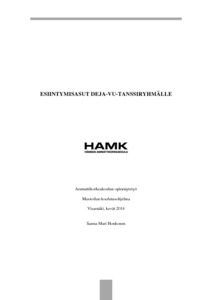 Opinnäytetyössä suunniteltiin esiintymisasut Deja-vu-tanssiryhmälle. Opinnäytetyössä selvitettiin, millainen on hyvä ja toimivaesiintymisasu ja mitä esiintymisasuilta vaaditaan. Aihetta käsitellään showtanssin näkö-kulmasta, koska esiintymisasu on käsitteenä laaja. Lisäksi opinnäytetyössä selvitettiin miten materiaalivalinnat vaikuttavat esiintymisasuihin. Deja-vu-tanssiryhmälle suunniteltiin esiintymisasut, koska uutena tanssiryhmänä, ryhmällä ei ole esiintymisasuja. Esiintymisasujen suunnittelussa otettiin huomioon Deja-vu-tanssiryhmän toiveet ja tarpeet
