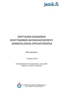 Opinnäytetyön toimeksiantajana oli ammatillinen koulutusorganisaatio. Lähtökohtana oli luoda osaamisen kehittämisen prosessi oppilaitoksen matkailu-, ravitsemis- ja talousalan osastolle. Ratkaisukeskeisen tutkimusotteen lisäksi tutkimuksessa hyödynnettiin tapaustutkimuksen lähestymistapoja. Eri menetelmiä käyttämällä pyrittiin saamaan syvällinen ja monipuolinen ratkaisu ongelmaan. Kehittämisprojekti aloitettiin selvittämällä opettajien nykyhetken ja tulevaisuuden osaamistarpeita. Määriteltyjen tarpeiden pohjalta laadittiin osaamiskartoituslomake, joiden vastausten perusteella määriteltiin henkilökohtaiset osaamiskartat sekä ryhmän yhteinen osaamiskartta. Prosessi jatkui kehittämiskeskusteluilla ja yksilö- sekä ryhmäkohtaisten kehittymissuunnitelmien laadinnalla.