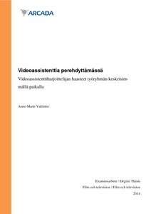 Opinnäytetyöni käsittelee mitä videoassistentin työ on käytännössä ja mitä häneltä vaaditaan pitkän fiktioelokuvan kuvauksissa. Lähtökohdat opinnäytetyöni tutkimukseen ovat peräisin omasta työkokemuksesta sekä videoassistenttiharjoittelijana että 2. kamera-assistenttina. Valitettavan usein videoassistentti tulee syrjityksi, koska ei suoriudu työtehtävistään tarpeeksi nopeasti, täsmällisesti tai oma-aloitteellisesti. Tutkimukseni tarpeellisuus tuli esiin Jenna Lindénin opinnäytetyössä, Tavoitteena Reilu Harjoittelu – Harjoittelijoiden työolojen kehittäminen elokuvatuotannoissa, jossa hänen tutkimuksensa osoitti muun muassa harjoittelijoiden tarvitsevan enemmän perehdytystä ja ohjausta ennen harjoittelun alkamista.