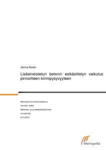 Insinöörityön aiheena oli vesitiivistetyn betonin esikäsittelyn vaikutus pinnoitteen kiinnipysyvyyteen. Entuudestaan tiedettiin, että vesitiiveyttä parantavat lisäaineet betonissa heikentävät maalin kiinnipysyvyyttä. Tavoitteena oli löytää sellainen esikäsittelymenetelmä, jonka avulla tarttuvuutta saataisiin parannettua.