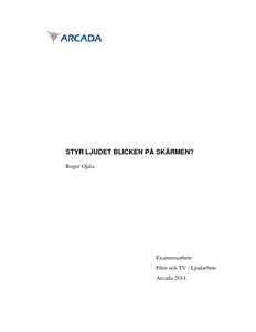 Det här är en kvantitativ studie gjord med Eyetracker-teknologi. Reaktionstider behandlas hos två försöksgrupper med 21 försökspersoner i vardera gruppen. Det som undersöks är ljudeffekters inverkan på att styra blicken mot föremål som uppenbarar sig i bild i ett videoklipp. En försöksgrupp tittade på och lyssnade till ett videoklipp där ljudeffekter spelas upp samtidigt som föremål uppenbarar sig i bild, medan den andra gruppen inte fick ta del av dessa effekter. Resultatet av studien är inte entydigt. I vissa sammanhang kan man styra blicken med ljudeffekter, men när de visuella elementen är starka har man i denna studie inte lyckats styra blicken mot ett föremål där ett ljud spelas samtidigt som föremålet uppenbarar sig. This is a quantitative study done with Eyetracking technology. Reaction times of two test groups are researched. 21 people were tested in each group. The focus of the study the impact of sound effects to controll the sight to objects that appear in picture of a video. One of the two groups looked at and listened to a clip where sound effects are played simultaniously to objects that appear in the picture, as the other group didn’t get the sound effects to the objects. The result is not unequivocal. In some cases it is possible to controll the sight with sound effects but when the visual elements are strong this study has failed to pull the sight to an object where a sound is played simultaniously to an appearing object.