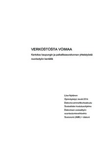 Nykänen, Liisa. Verkostosta voimaa. Nuorisotyötekijöiden ajatuksia yhdessä tehtävästä nuorisotyöstä – Kartoitus kaupungin ja paikallisseurakunnan yhteistyöstä nuorisotyön kentällä. Diak Etelä, Helsinki. Kevät 2014, sivumäärä 63, 2 liitettä. Sosiaalialan koulutusohjelma, Diakonisen sosiaalityön suuntautumisvaihtoehto. Sosionomi (AMK) + Kirkon diakoniatyön virkakelpoisuus.