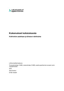 Kehittämisehdotukset liittyvät kotiutuksen suunnitteluun ja osallisuuteen. Läheisen rooli ja siinä tukeminen tulisi huomioida kotiutuksessa. Palautteenannon tulisi olla mahdollista tasavertaisesti kaikille. Jatkotutkimusaiheet liittyvät palautteenantoon, toimijuuteen kotiutuksessa, ohjaukseen sekä tunteisiin asiakaskokemuksen muodostumisessa. Discharge from hospital is a multi-phased process which requires co-operation with clients and relatives. The aim of this thesis was to improve customer experience and to develop the participation of clients and relatives in the discharge process. The purpose of this thesis was to describe the experiences of homecare clients and their relatives of discharge as well as their participation in the discharge planning and implementation. In addition, the purpose was to present suggestions for the development of the discharge process. The target organization was Päijät-Häme Welfare Group.