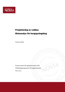 Jag har genom detta examensarbete lärt mig att söka fram information i lagar och att använda Finlands byggbestämmelsesamlings olika föreskrifter. Detta har också gett mig mera kunskaper i olika dataprogram som behövs. The goal of this Bachelor´s thesis was to plan a row house and to do a risk analysis for rock blasting on the plot where the row house is planned to be built. The thesis has been made for Ab Bem Consult Oy which is a medium-sized building company from Vaasa. The work includes marketing material for selling apartments, a building method description, an energy certificate and permit blue prints. A risk analysis and a drill- and charge plan for rock blasting on the plot are also described in the thesis. The row house has four apartments which are between 80–97 m3 and will be ready in summer 2014 in Västervik.