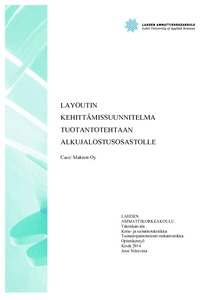 Tämä opinnäytetyö on tehty Makron Oy:lle. Opinnäytetyön tarkoituksena oli tehdä layoutin kehittämissuunnitelma Hollolan tuotantotehtaan alkujalostusosastolle. Tavoitteena oli tutkia nykyisen layoutin toimivuus ja suunnitella uusi paranneltu layout kerättyjen tietojen pohjalta.