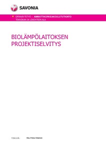 Tämän opinnäytetyön aiheena on projektiselvitys erään energialaitoksen tilaamasta biolämpölaitoksen rakennusprojektista ja sen toiminnasta. Selvityksessä käsitellään projektin vaiheet suunnittelusta rakennusurakan valmistu-miseen ja käyttöönottoon. Selvitys on tehty toimeksiantajan asiakirjojen, kokousmuistioiden ja pöytäkirjojen perus-teella. Tarkoituksena on luoda selkeä raportti projektin kulusta ja projektin tapahtumista. Biolämpölaitos on tilattu eräältä kattilatoimittajalta KVR- eli kokonaisvastuurakentamisurakkana, jossa urakoitsija on päävastuussa projektin valmistumisesta.